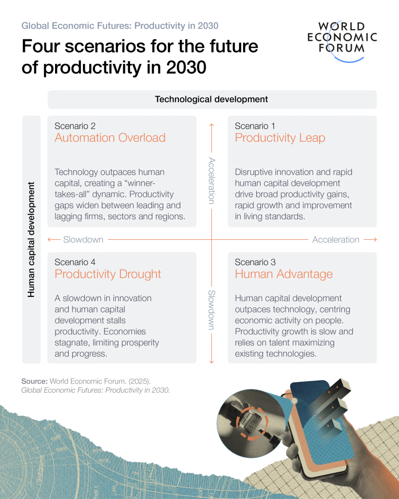 La primera edición de la serie ‘Futuros Económicos Globales’ del Foro aplicó la planificación de escenarios a la productividad—un ingrediente esencial del crecimiento que ha estado relativamente escaso.